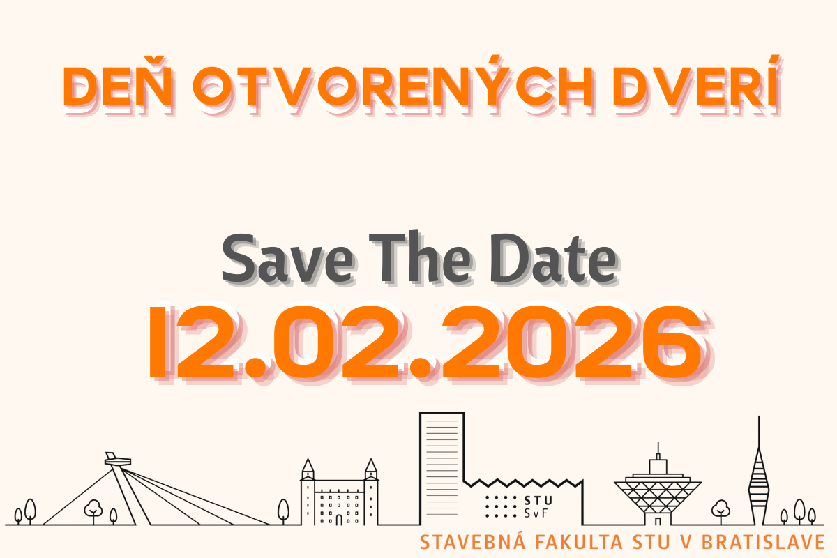 srdečne vás pozývame na Deň otvorených dverí, vo štvrtok 12. 2. 2026, na Stavebnej fakulte STU v Bratislave, ktorý je určený pre všetky ročníky študentov stredných škôl a gymnázií. Pre aktuálne informácie sleduj aj náš Instagram