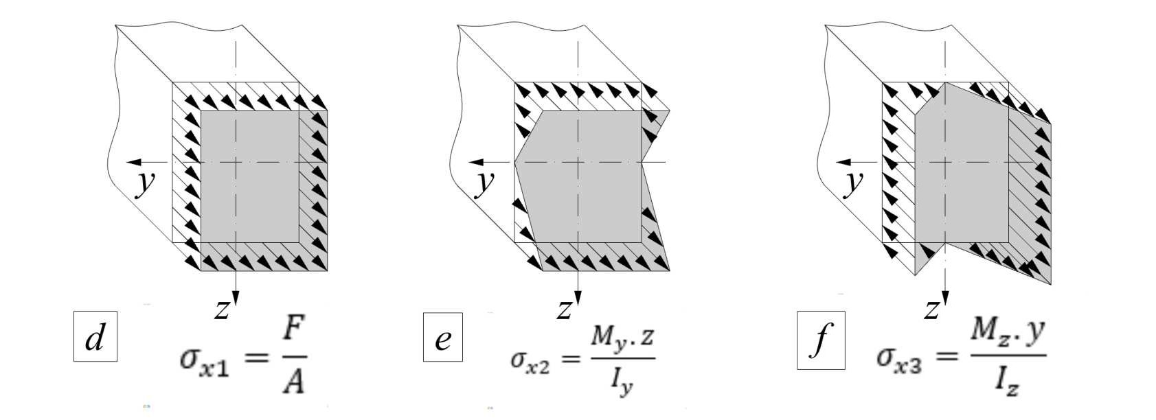 Pri všetkých troch jednoduchých spôsoboch namáhania vzniká normálové napätie σx. Jeho výslednú hodnotu môžeme určiť algebrickým súčtom napätí od jednotlivých typov namáhania.