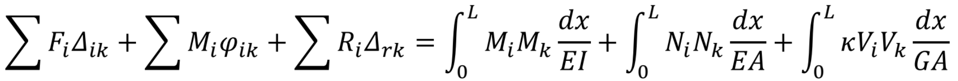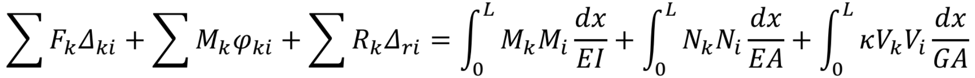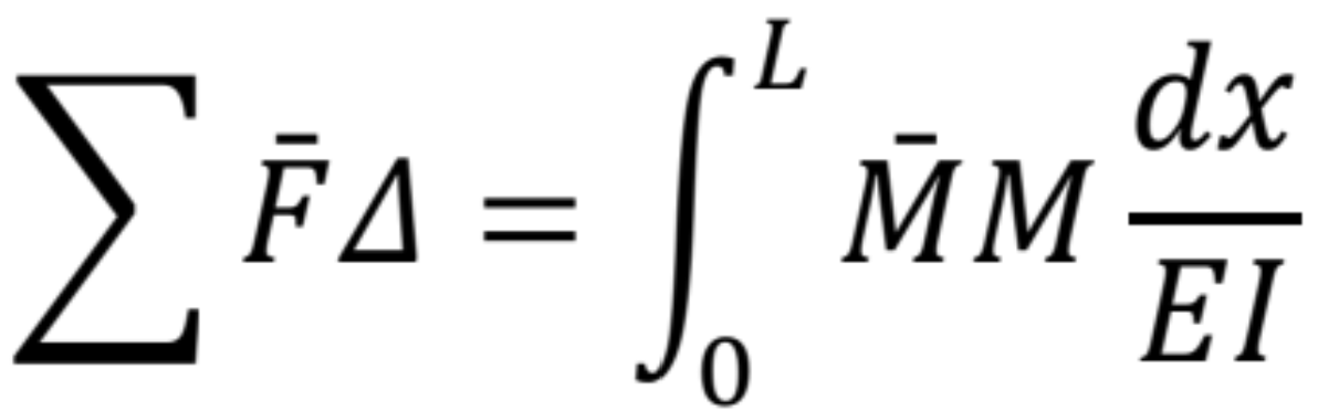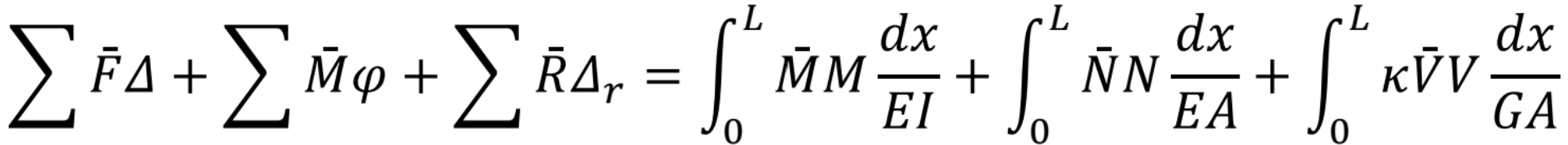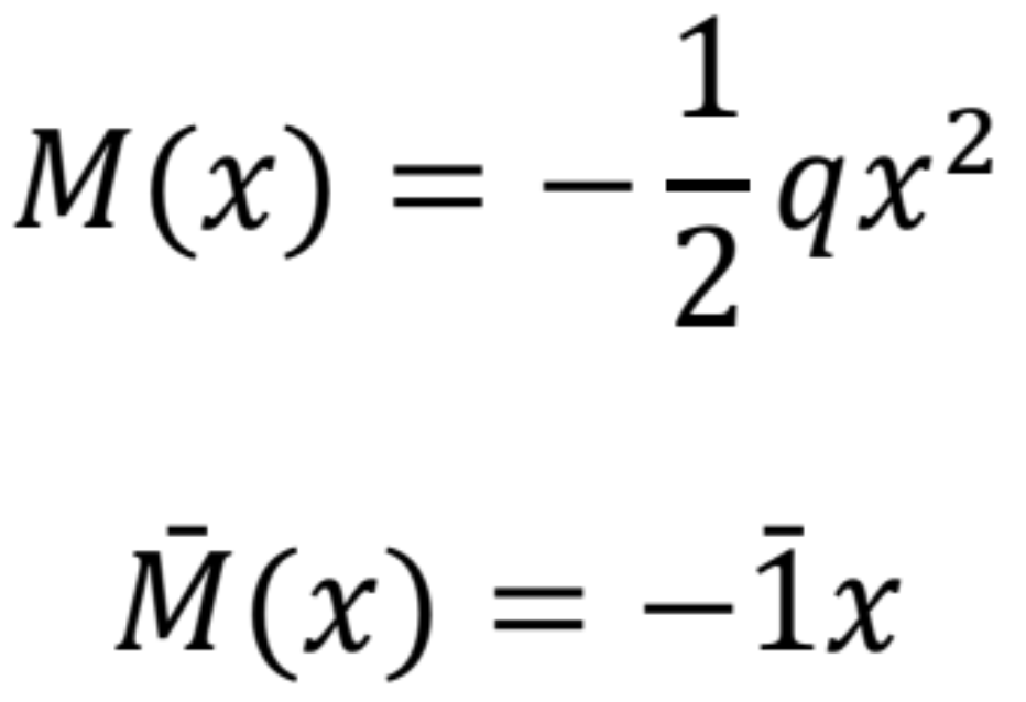 Z princípu virtuálnych prác ostane na ľavej strane výrazu člen s virtuálnou silou a na pravej strane len člen obsahujúci ohybové momenty, pretože ostatné prierezové sily a teplota nadobúdajú nulové hodnoty: