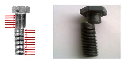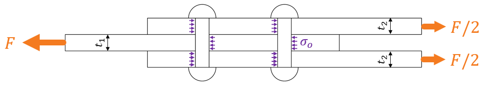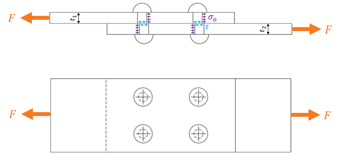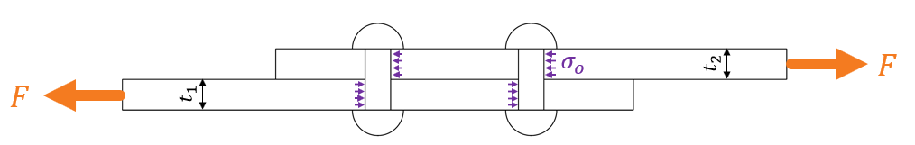Pri jednostrižných nitoch sú nity okrem šmyku namáhané aj dvojicou síl M = F.(t1+t2), ktoré vyvodzujú tlaky na spodné plochy hláv nitov a deformujú spojené časti tak, aby lúče síl splynuli. Preto vo výpočtoch momentový účinok zanedbávame.
