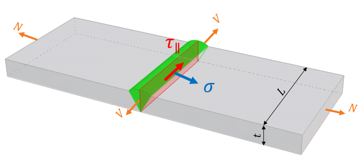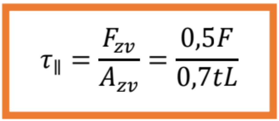 .L. Pri výpočte šmykového napätia v kútovom zvare predpokladáme, že sila pripadajúca na zvar sa rozloží rovnomerne po dĺžke zvaru.