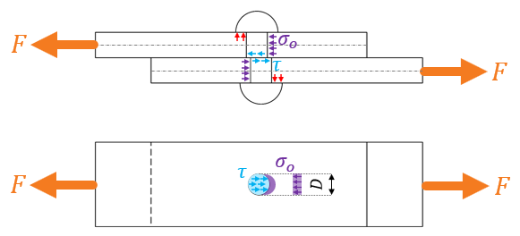 - Tangenciálne napätie v drieku nitu s priemerom D je