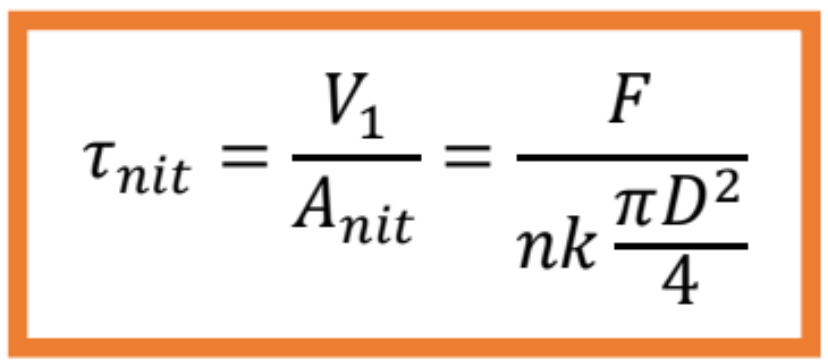 - Šmyková sila pripadajúca na prierezovú plochu jedného nitu je
