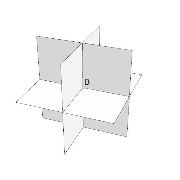 Priesečník troch kolmých rezových rovín označíme ako bod B.