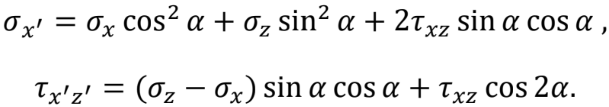 Všetky tri vzťahy pre σx', σz', τx'z' môžeme zapísať jednou maticovou rovnicou