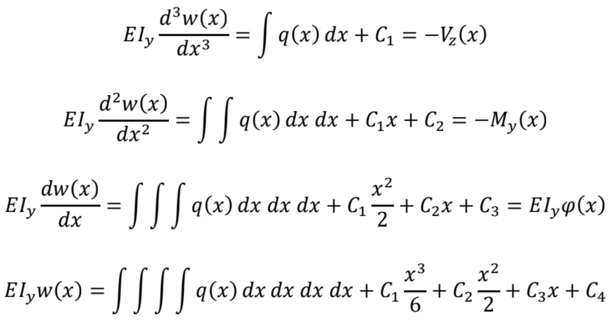 Pri odvodení rovnice v modifikovanom tvare dvakrát zderivuje ohybovú čiaru nosníka: