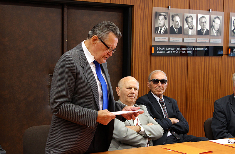 Devätnásť absolventov, ktorí na FIS SVŠT ukončili odbory – stavebné konštrukcie (stavby železobetónové a predpäté, stavby oceľové), dopravné stavby a stavby vodohospodárske (malá voda – meliorácie, závlahy, vodovody, kanalizácie a veľká voda – zdrže a priehrady) - si osobne prevzalo z rúk dekana Stavebnej fakulty STU prof. Ing. Stanislava Unčíka, PhD. pamätný diplom za celoživotné dielo a šírenie dobrého mena svojej alma mater. Dojímavý príhovor, plný spomienok na ťažkú dobu povojnových vzťahov, ale i na študentský život a na svojich vyučujúcich, predniesol zástupca absolventov Ing. Miroslav Slovák.