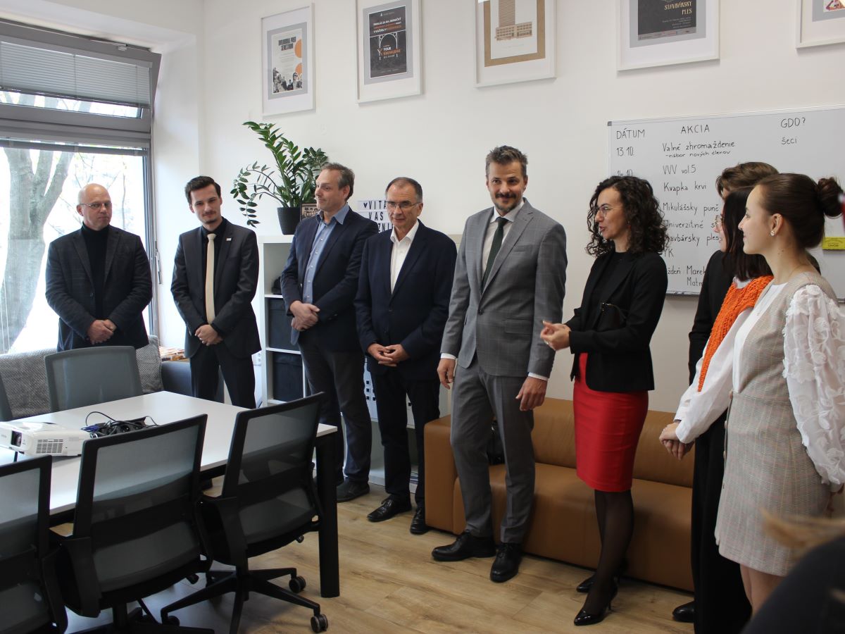 Otváracej slávnosti sa zúčastnil aj oblastný riaditeľ firmy Strabag Ing. Karol Chripko, ktorý podporil ideu rekonštrukcie a osobne dohliadal na jej priebeh. „Som rád, že sme mohli pomôcť svojou troškou pre najaktívnejších študentov. Verím, že tu prídete na veľa inšpiratívnych myšlienok a toto miesto budete mať radi,“ povedal Ing. Chripko.