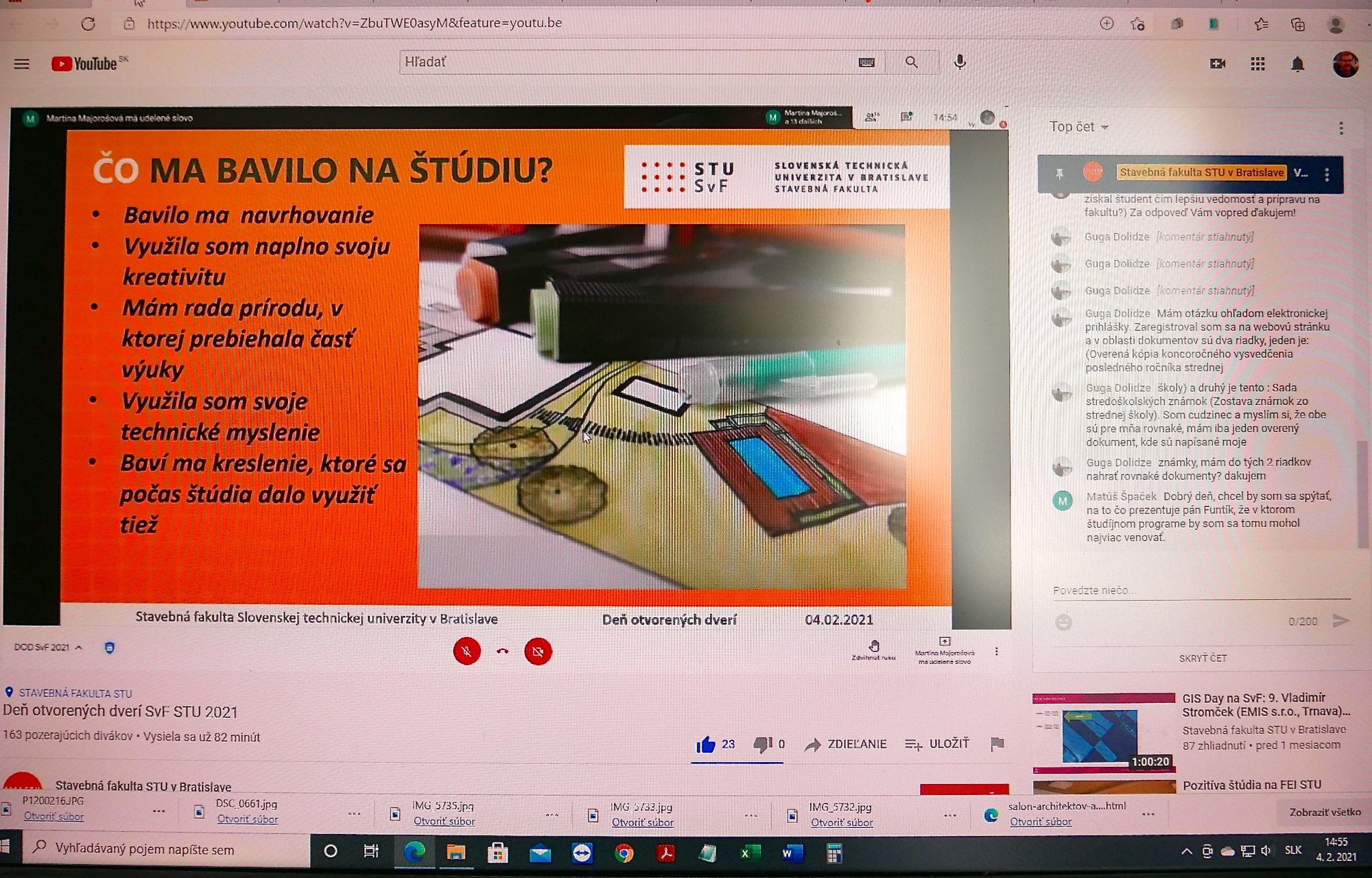 Deň otvorených dverí 2021 bol netradičný... Pretrvávajúca pandémia nového koronavírusu zmenila spôsob prezentácie aj tohto podujatia – z prezenčnej formy do online. Pre nás to v konečnom dôsledku znamenalo – prezentovanie Stavebnej fakulty STU priamo v príbytkoch našich potenciálnych študentov. Veríme, že s mnohými z nich sa stretneme osobne na fakulte.