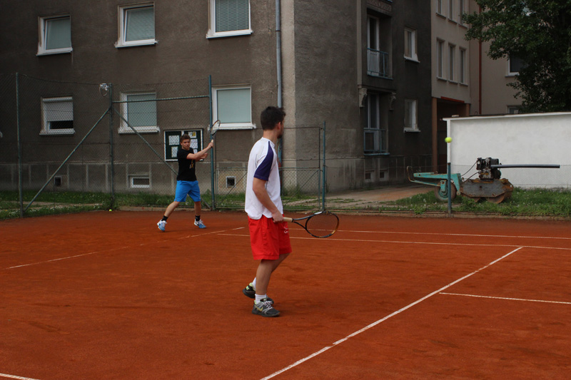 Na tenisových kurtoch Mladej Gardy nastúpili v prvej štvorhre za učiteľov M.Sokol, P.Černý - proti dvojici študentov M.Lalík,M.Hasák . Vyhrali študenti 7/6, 6/2.