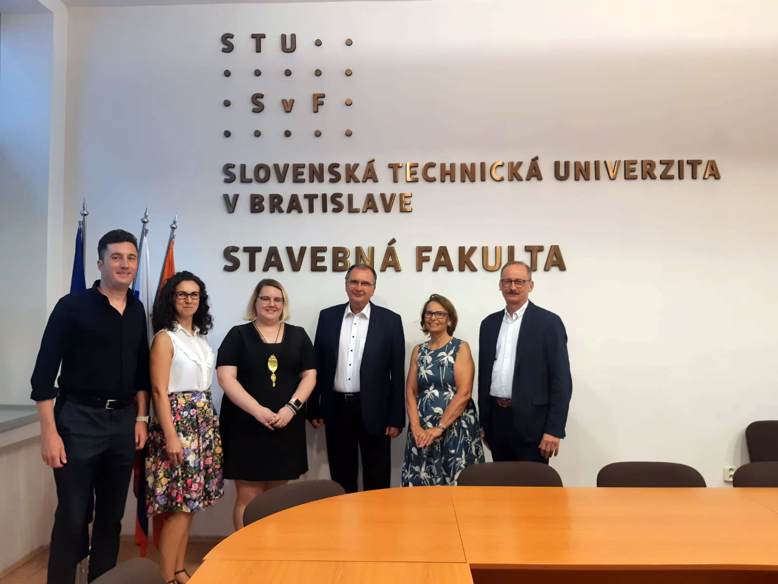 Na našej fakulte privítali prodekanku a riaditeľku Ústavu architektonického inžinierstva Viktóriu Sugár dekan SvF Stanislav Unčík a prodekanka Katarína Gajdošová v sprievode prorektorky našej univerzity Ľubice Vitkovej a dekana Fakulta architektúry a dizajnu STU Pavla Gregora.