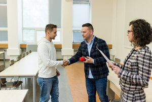 Najlepší riešitelia si prevzali ceny z rúk prodekanky profesorky Kataríny Gajdošovej a prezidenta BIMaS Dr. Michala Pasiara.